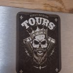 Photo gravée : portrait, moto, souvenir de voyage