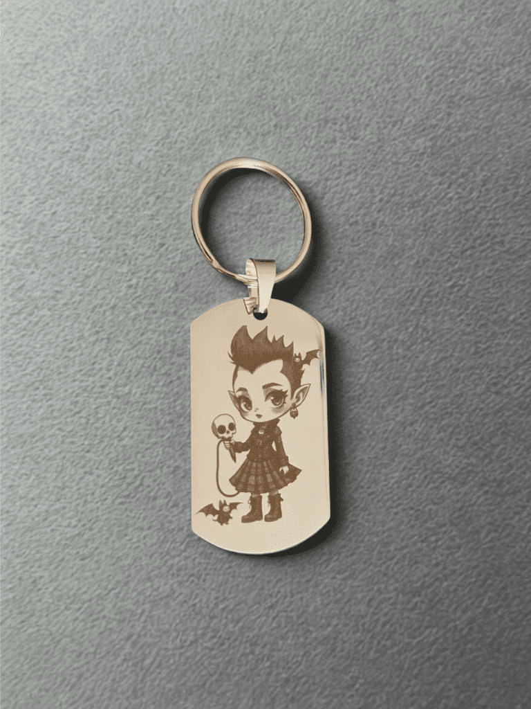 Un porte-clés gothique vampire gravé au laser – Création artisanale