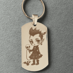 Porte-clés fille vampire gothique gravé au laser sur acier inoxydable 316L. Univers dark kawaii, parfait pour les amateurs de style gothique et kawaii.