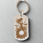 Chaque porte-clés est gravé au laser dans notre atelier avec un soin extrême. La gravure permanente conserve tous les détails du personnage, de la batterie et des roses, garantissant un rendu net et durable, même après un usage quotidien. Ce processus artisanal fait de chaque porte-clés un objet unique et précieux.